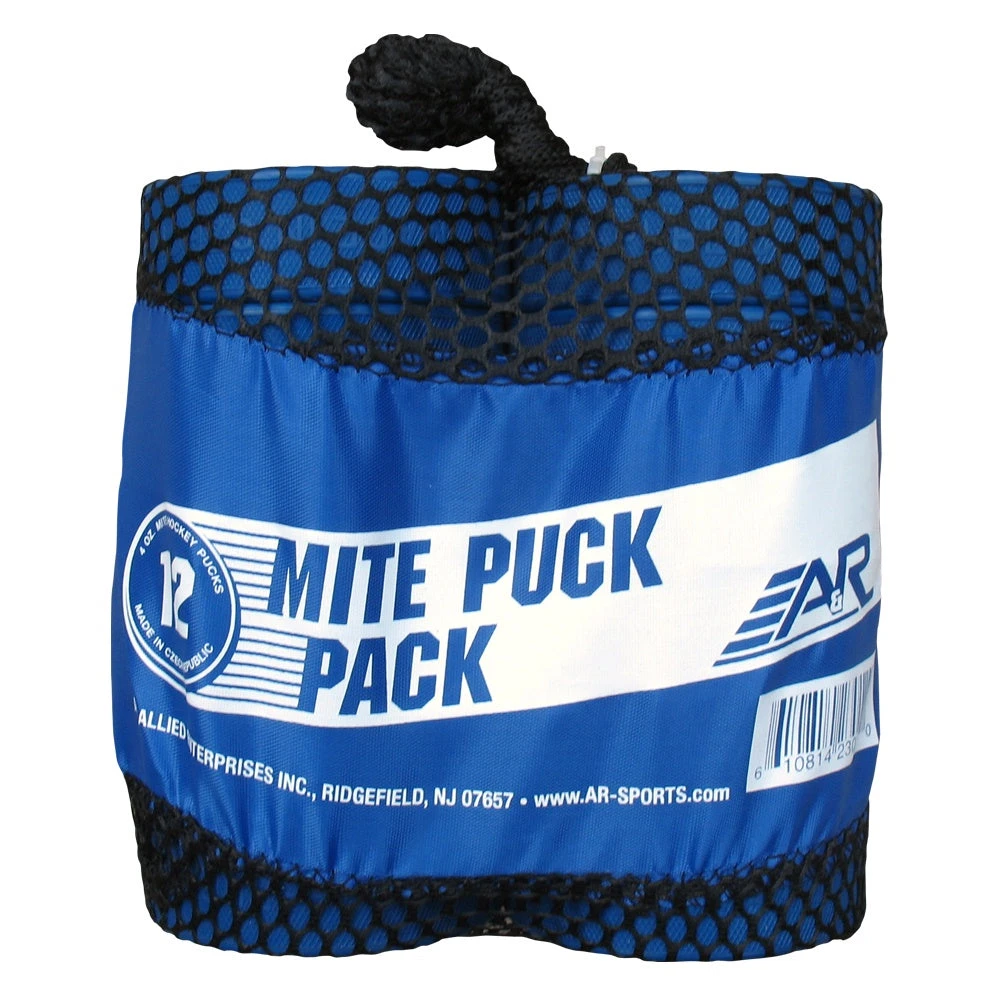 Twelve-pack of blue mite pucks in a mesh bag with a drawstring close.