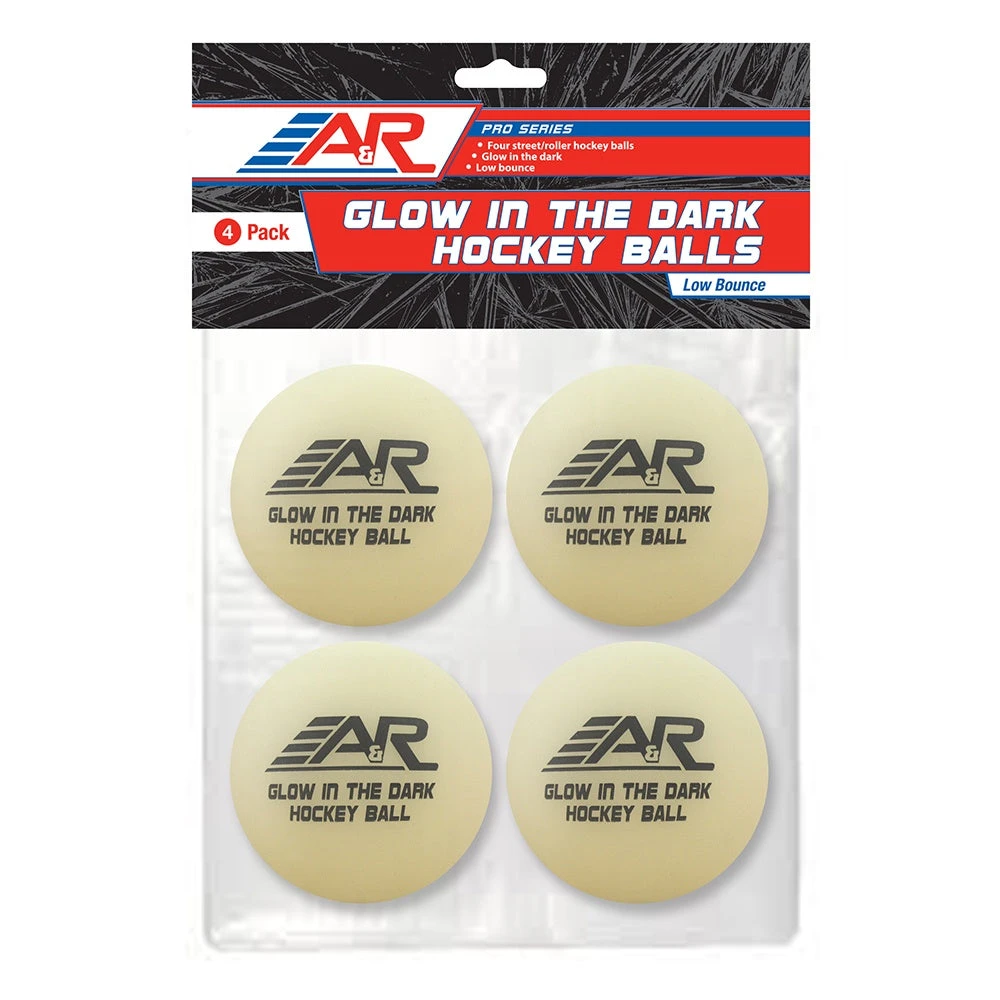 4-Pack Glow in the Dark, Low Bounce, stick handling balls. Keep the fun going even after the sun sets!