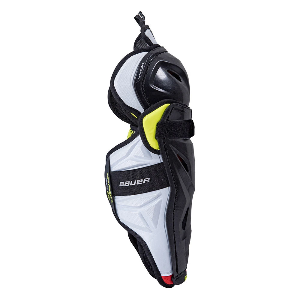 The Shift Pro hockey shin guard is an exclusive offering in the 2022 Bauer Vapor lineup that delivers enhanced protection, comfort and flexibility for the performance level player at a price point that makes it a unique value. Building on the great performance of the stock Vapor 3X shin guard, the Shift Pro offers an upgraded Hyperlite HD molded calf guard and Dynaflex lock strapping for improved fit and protection.